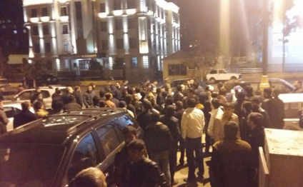 Etirazçılar Sabunçu rayon Polis İdarəsinin Bakıxanov qəsəbəsindəki bölməsinin qarşısına yığışıblar.