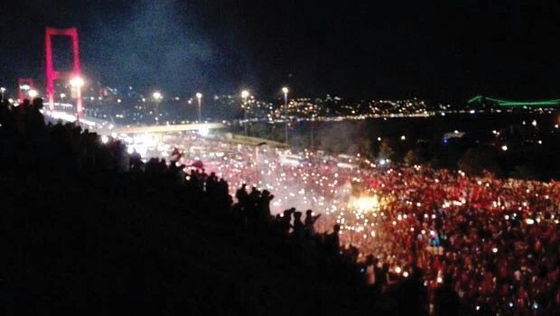 Bu axşam yerli vaxtla saat 22:00-da İstanbulda minlərlə insan çevriliş cəhdinə etiraz olaraq Boğaziçi körpüsünə toplanıblar.
