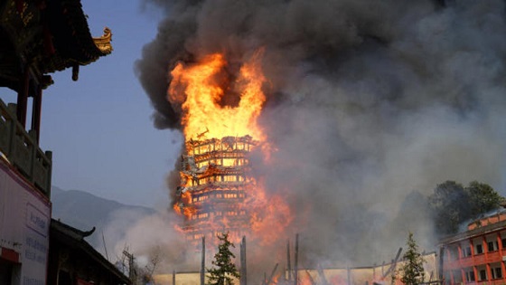 Çində dünyanın ən hündür tikililərindən sayılan məbəd yanıb.