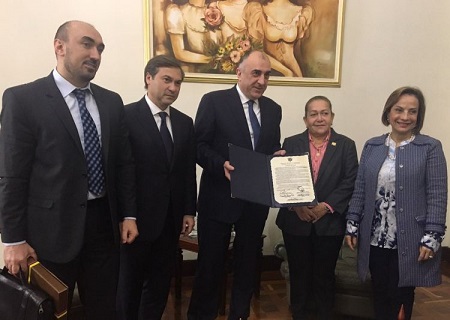 Senatorlar 29-30 sentyabr 2016-cı il tarixlərində Bakıda keçirilmiş V Beynəlxalq Humanitar Forum çərçivəsində Azərbaycanda səfərdə olduqlarını, birinci vitse-prezident Mehriban Əliyeva, xarici işlər naziri və Milli Məclisin üzvləri ilə görüşlərini məmnuniyyətlə xatırlayıblar. Həmçinin, dost Azərbaycan xalqının yanında olduqlarını və gələcəkdə də iki ölkə arasında dostluq münasibətlərinin inkişafı naminə səylərini əsirgəməyəcəklərini diqqətə çatdırıblar. Görüş əsnasında Kolumbiya Senatının vitse-prezidenti, xarici əlaqələr və milli müdafiə komissiyasının prezidenti, eləcə də senatorlar tərəfindən imzalanaraq qəbul edilmiş Xocalı soyqırımının 25-ci ildönümü ilə bağlı qərarnamə nazir Elmar Məmmədyarova təqdim edilib. Nazir Kolumbiya Senatının II konstitusional daimi komitəsində “Azərbaycan Respublikasının ərazisinin qanunsuz işğal edilməsi” adlı qətnamənin, həmçinin Senatın Xarici Əlaqələr Komissiyası tərəfindən Xocalı soyqırımının 25-ci ildönümü ilə əlaqədar sənədin qəbul edilməsini yüksək qiymətləndirdiklərini söyləyib.