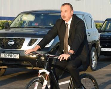 Dövlət başçısı zavodun istehsal etdiyi velosipedi sınaqdan keçirdi.