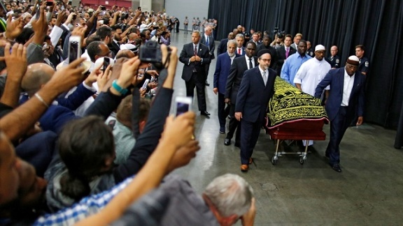 Torpağa tapşırılmazdan əvvəl Məhəmməd Əlinin cəsədinin olduğu tabut şəhərin küçələri ilə aparılacaq./apa/