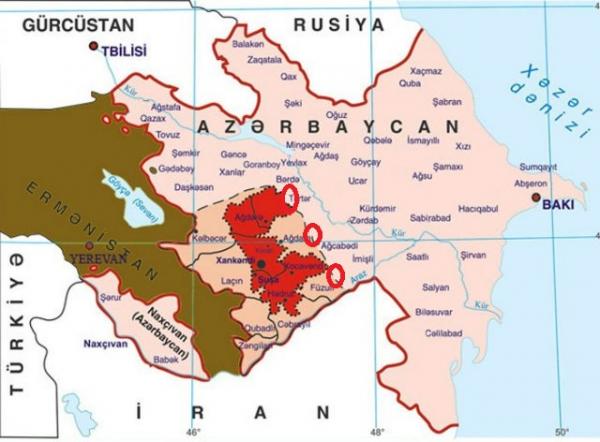 Gərginliyin yaşandığı ərazilər (qırmızı dairə ilə işarələnib)