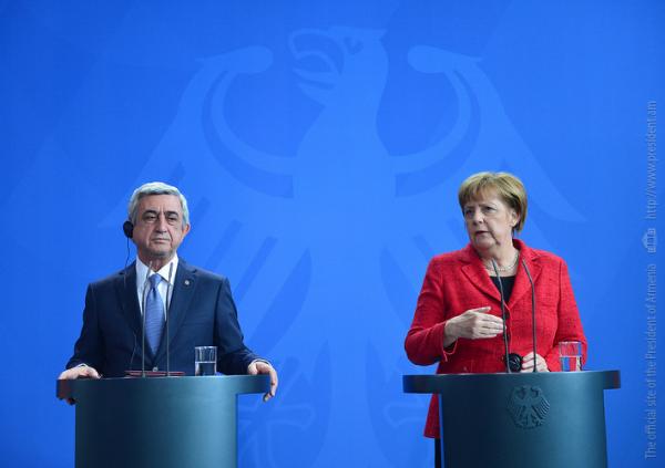 Ermənistan prezidenti Serj Sarkisyan və Almaniya kansleri Angela Merkel arasında birgə mətbuat konfransı