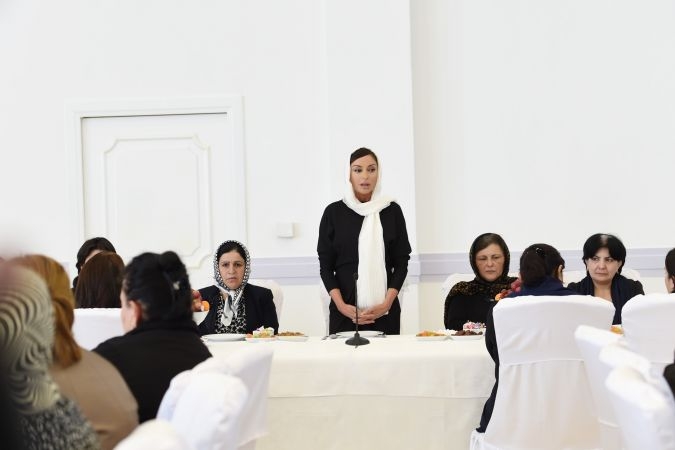 Əziz analar, mən bir ana kimi sizin qarşınızda baş əyirəm. Siz elə övladlar böyütmüsünüz ki, bu gün bütün xalq onlarla fəxr edir. Əlbəttə, heç bir ana istəməz ki, müharibə olsun, övladlarımız gənc yaşında dünyalarını dəyişsin. Azərbaycan dövləti Ermənistan-Azərbaycan, Dağlıq Qarabağ münaqişəsinin sülh yolu ilə həlli üçün artıq 20 ildən çoxdur ki, bütün səylərini göstərir. Biz istəyirik ki, torpaqlarımız azad edilsin. Biz istəyirik ki, insanlarımız öz doğma yurdlarına qayıtsın. Biz işğalçı deyilik. Biz işğalçı ilə mübarizə aparan millətik. Bizim heç bir başqa millətin, başqa xalqın torpağında gözümüz yoxdur. Biz, sadəcə, öz torpaqlarımızı işğaldan azad etmək istəyirik. Bu həqiqəti bütün dünya bilir və artıq qəbul etməlidir. Ədalətsiz, işğalçı siyasətin qarşısını almaq üçün bizim qəhrəman ordumuz, qəhrəman övladlarımız var. Azərbaycan xalqı üçün hər bir əsgərimiz dəyərlidir və əzizdir. Dünyanın ən böyük sərvəti olan ömrünü Vətən naminə qurban verən hər bir övladımız Azərbaycanın tarixində qəhrəman kimi yaşayacaq. Bu günlər bütün xalqımız ordumuza dəstək verir.