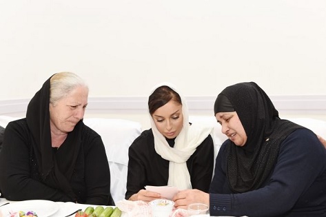 Mehriban Əliyeva şəhid analarına və onların doğmalarına başsağlığı verib, yaralılara şəfa diləyib. Şəhidlərin xatirəsi bir dəqiqəlik sükutla yad olunub.