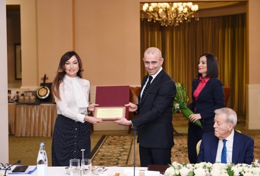 Daha sonra V. Mustafayev “2015-ci ilin adamı” mükafatının diplomunu və pul mükafatını Heydər Əliyev Fondunun prezidenti Mehriban Əliyevaya təqdim edib.