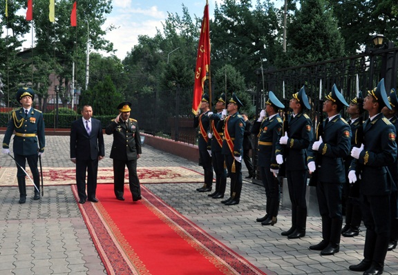Sonra Qırğızıstanın Müdafiə naziri cənab Abibilla Kudayberdiyev tərəfindən general-polkovnik Z.Həsənovun rəsmi qarşılanma mərasimi keçirilib.