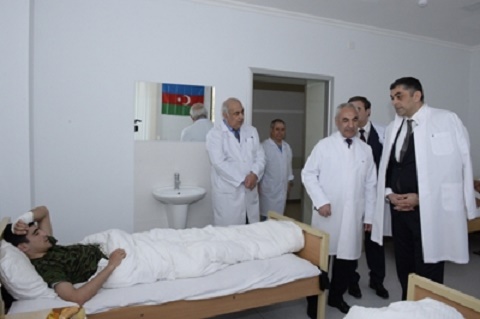 Nazir yaralı əsgərləri ziyarət edib