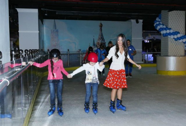 Leyla Əliyeva uşaqlarla birgə konki sürüb