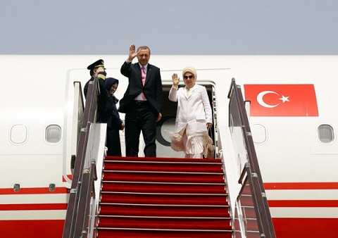 Rəcəb Tayyib Ərdoğanı və xanımı Əminə Ərdoğanı hava limanında Azərbaycanın baş nazirinin müavini Əli Əhmədov və digər rəsmi şəxslər yola salıblar./apa/