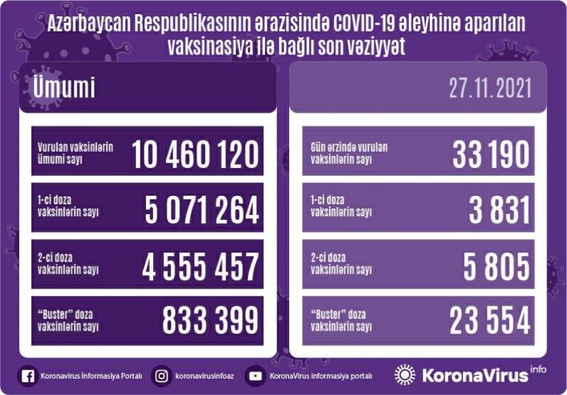 Nazirlər Kabineti yanında Operativ Qərargah 27.11.2021 tarixi üçün COVİD-19 infeksiyasına yoluxma, ölüm, aparılan testlər və vaksinasiya haqda məlumatını açıqlayıb.