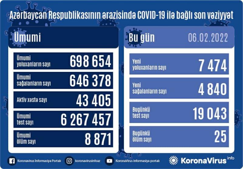 Nazirlər Kabineti yanında Operativ Qərargah 06.02.2022 tarixi üçün COVİD-19 infeksiyasına yoluxma, aparılan testlər , vaksinasiya və ölüm statistikasını açıqlayıb.