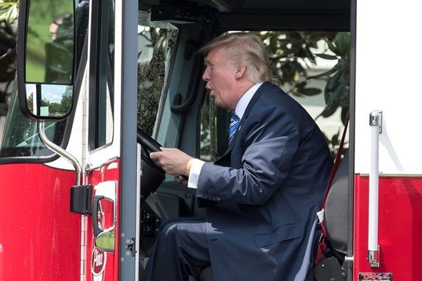 ABŞ prezidenti Donalt Tramp Ağ evin həyətində keçirilən Amerika istehsalı olan malların sərgisində yanğınsöndürən avtomobilin sükanı arxasına keçib.
