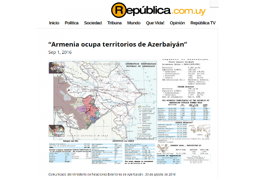 Uruqvayın "La Republica" qəzetinin və Uruqvay Xəbərlər Agentliyinin (UYPRESS) internet portallarında “Ermənistan Azərbaycan ərazilərini işğal edir” və “Dağlıq Qarabağ Azərbaycanın tarixi ərazisidir” adlı məqalələr dərc olunub.
