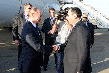 Məlumata görə, hər iki ölkənin dövlət bayraqlarının dalğalandığı Heydər Əliyev Beynəlxalq Aeroportunda Rusiya Prezidentini Azərbaycanın xarici işlər nazirinin müavini Xələf Xələfov və “Bakı-2015” Avropa Oyunları Əməliyyat Komitəsinin nümayəndələri qarşılayıblar./anspress/